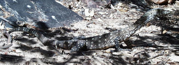 der Goanna auf etwa 1,5 Meter an mich herankam. - Man hatte mich schon